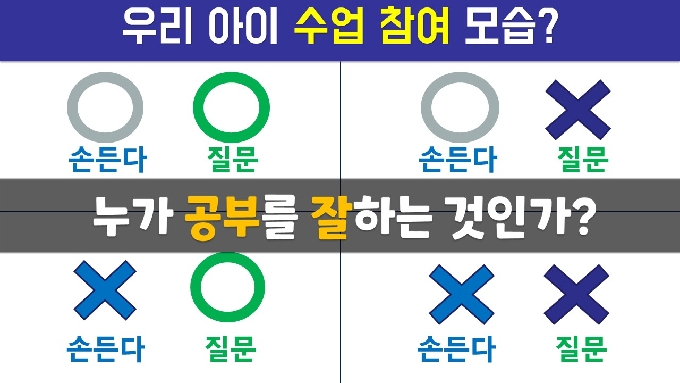 손도 들고 질문도 하는 아이, 손은 들지만 질문하지 않는 아이, 손은 들지 않지만 질문하는 아이, 손도 안 들고 질문도 하지 않는 아이.
