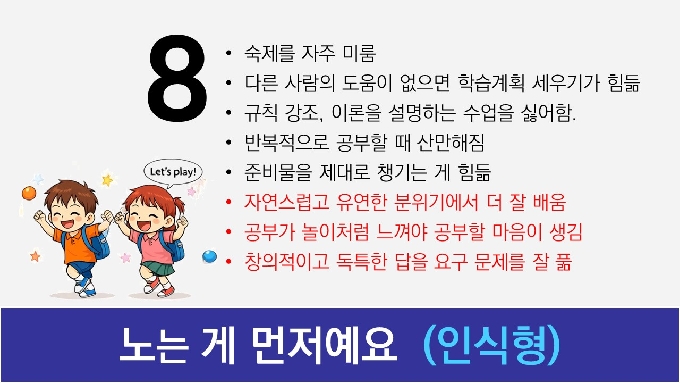 아이들 학습유형을 여덟 가지 정도로 풀어 보았습니다. 7. 학습유형 1