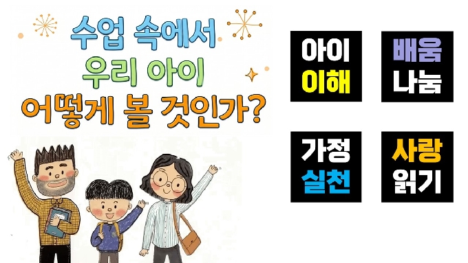 공개수업은 단지 “우리 아이가 잘하나, 못하나”를 확인하는 시간이 아니라, 학교 안에서 배우고 관계 맺는 우리 아이를 새롭게 발견하는 시간이라는 점을 함께 나누는 자리입니다.
