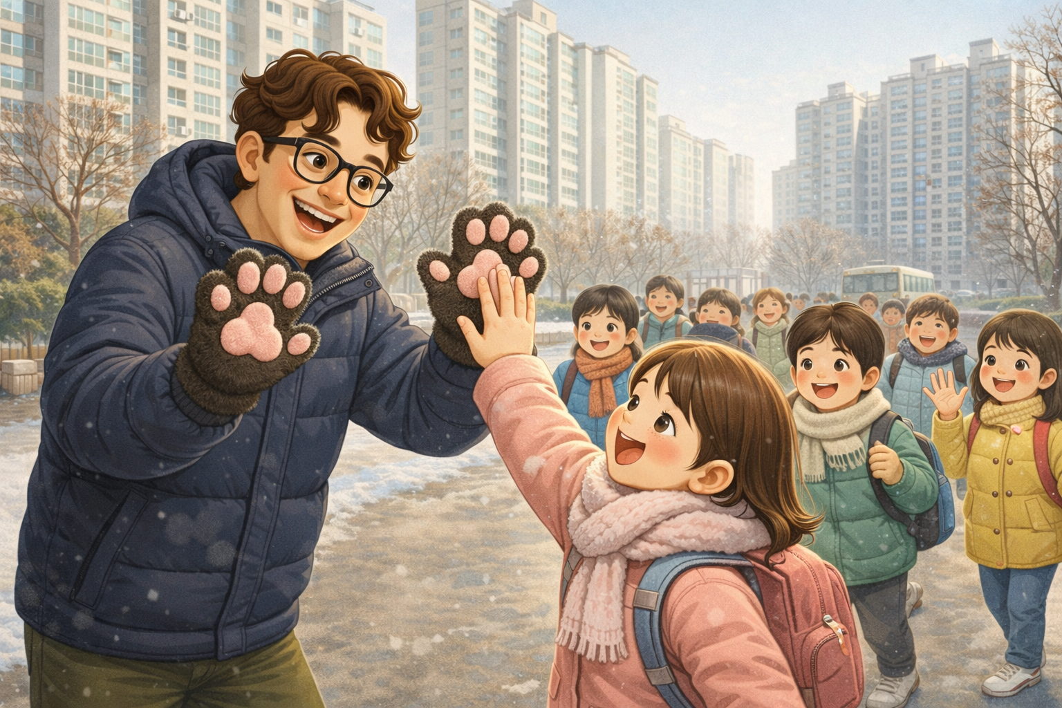 겨울 아침에 교문에서 하이파이브를 하다 보면 아이들 손이 부쩍 차가워졌다는 걸 느꼈습니다. “교장선생님, 안 추우세요?” 하고 걱정해 주는 아이도 있었답니다. 이제 방학이라서 다행이지요.