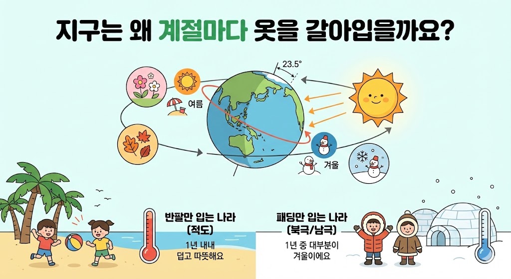 1. 지구는 왜 계절마다 옷을 갈아입을까요?