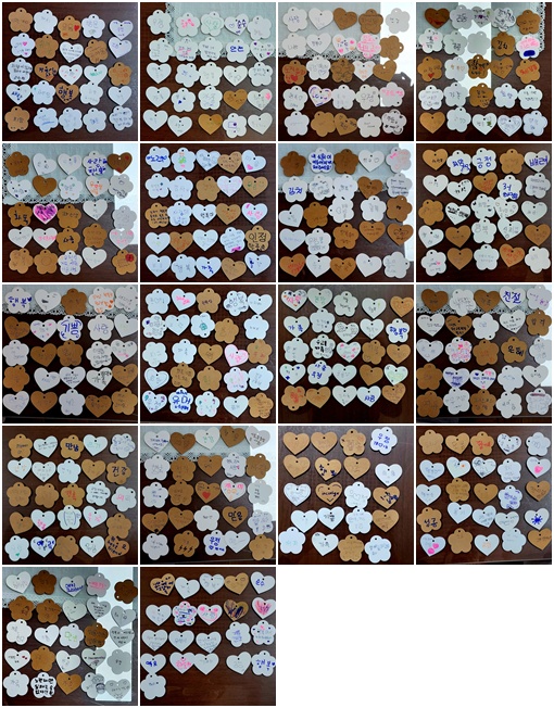 트리를 거두니, 우리 마음이 보였습니다 얘들아, 교장실 앞 골마루에 서 있던 크리스마스트리를 기억하나요? 반짝이 전구보다 먼저 눈에 들어왔던 건 여러 가치 낱말 종이들, 그리고 그 위에 적힌 여러분의 가치 낱말이었습니다.