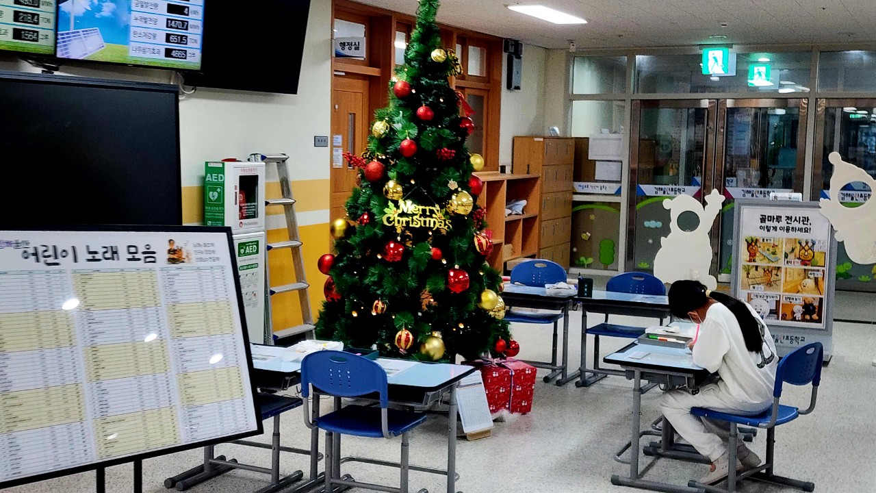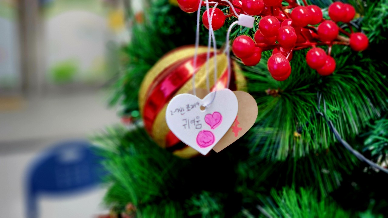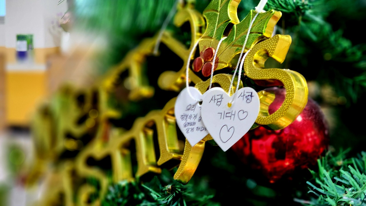 지난 12월, 〈교장샘터 060_내 가치 낱말 쓰기〉로 한 해를 돌아보며 내 마음을 가장 잘 설명하는 한 낱말을 골라 크리스마스 나무에 걸었습니다.